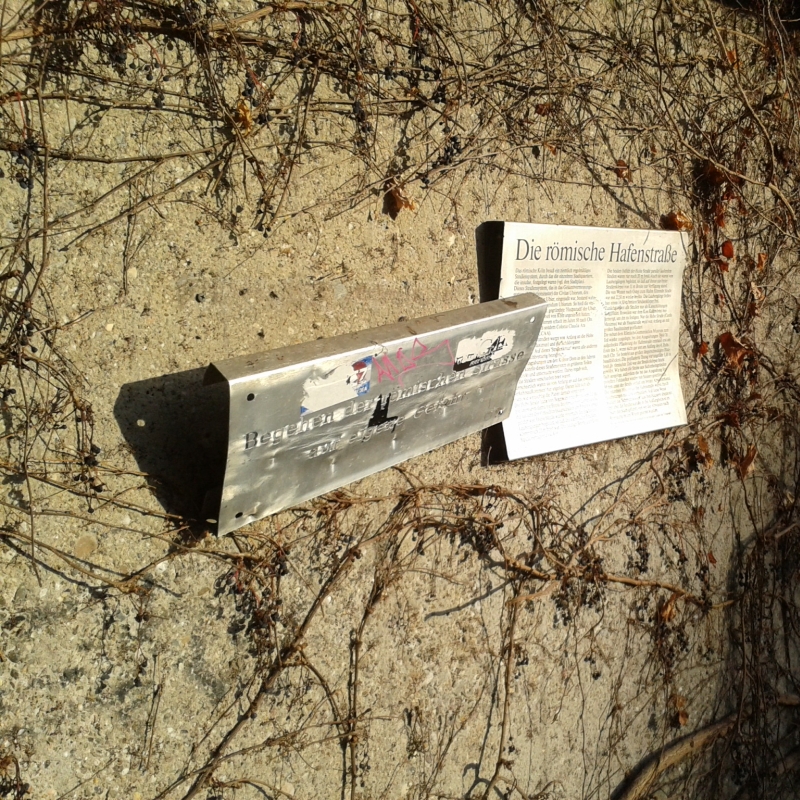 Das Betreten der Römischen Straße ist auf eigene Gefahr. Das Schild sieht schon ein bisschen mitgenommen aus.