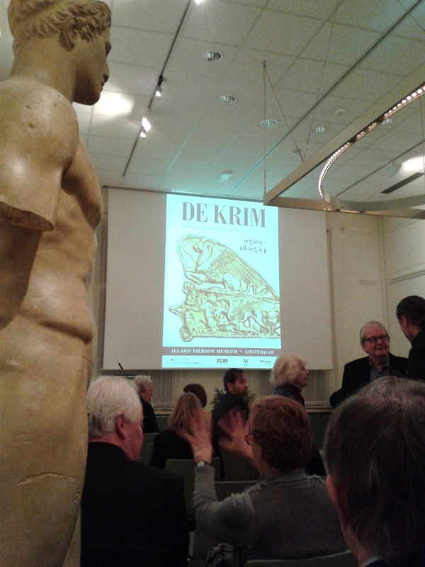 Die Krim-Ausstellung ist weitergezogen und ist seit letztem Donnerstag im Allard Pierson Museum in Amsterdam eröffnet. Es war eine sehr schöne Eröffnung und die Umsetzung unserer Ausstellung ist im grafischen Bereich ganz anders, aber sehr ansprechend. Vieles musste an die Räumlichkeiten in Amsterdam angepasst werden, da sie ja auch ganz anders sind. Sie haben sich einiges einfallen lassen und ich muss sagen es gefällt mir richtig gut. Aber seht selbst. Ich habe ein paar wenige Aufnahmen gemacht, leider nur mit der Handy-Kamera, meine andere lag unpraktischerweise zu Hause. Inhaltlich verfolgt sie den gleichen Weg von den Griechen über die Skythen bis hin zu den Goten.