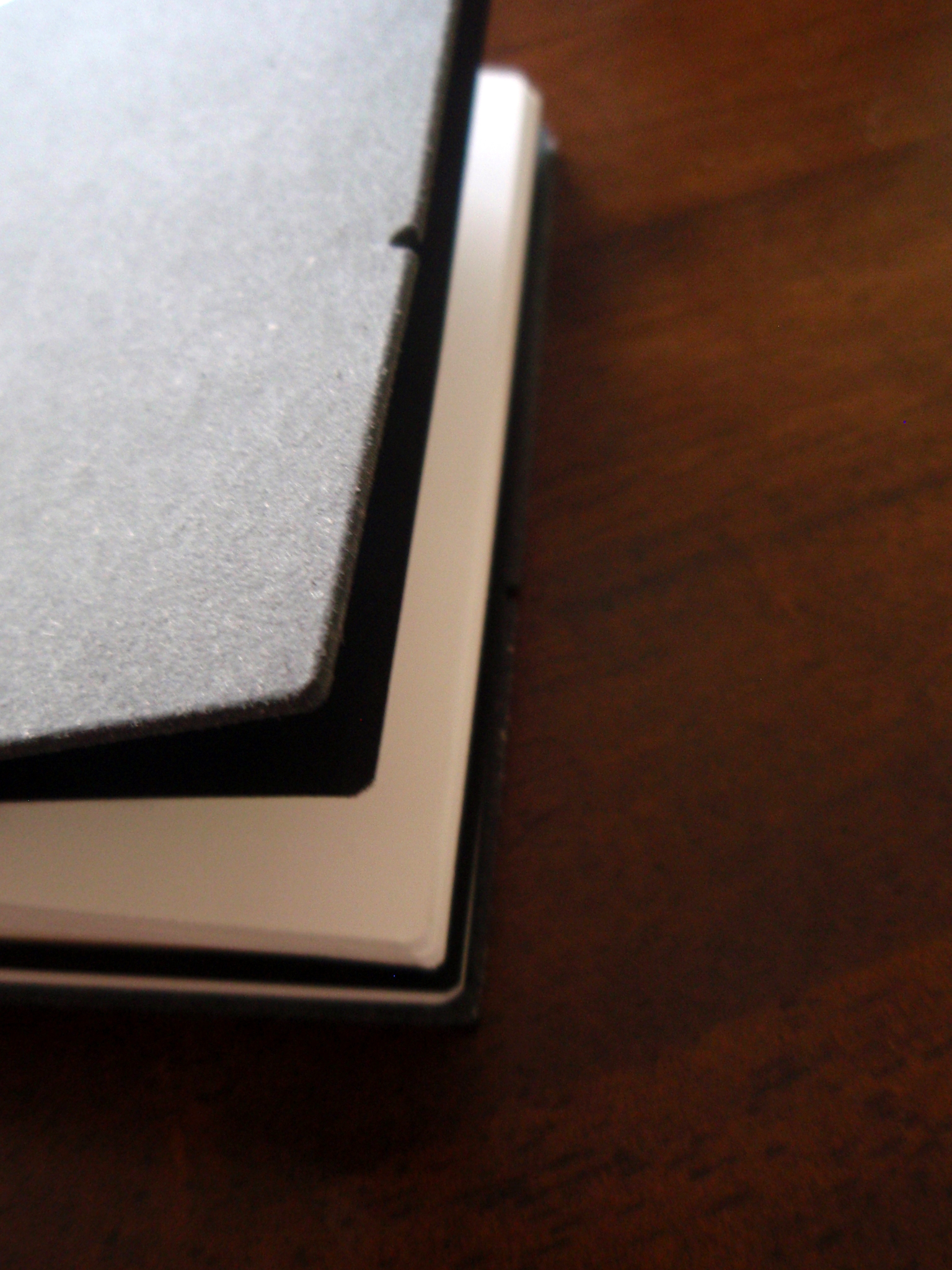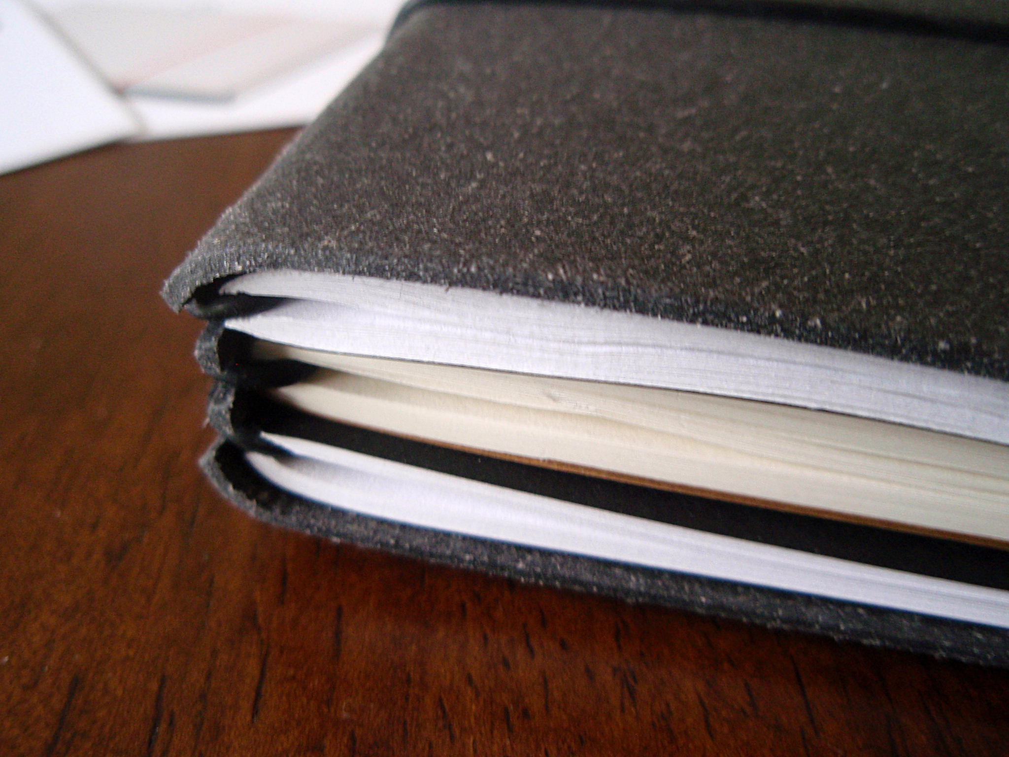 RoadSkin ist übrigens der Begriff „für offenes, d.h. unbeschichtetes Lederfasermaterial. Lederfasermaterial ist Leder, genaugenommen kleingehächseltes Leder, welches mit einem (ökologischen) Bindemittel versehen und ausgewalzt wird“, wie es so schön auf der Website erklärt wird. Es ist angenehm, und weicher/sanfter als ich gedacht habe, gleichzeitig scheint es robust zu sein. Das wird sich mit der Zeit dann genauer herausstellen, aber der erste Eindruck ist durchweg positiv. Außerdem besitzen die X17eigenen Notizbücher Seitenzahlen, ein nettes zusätzliches Detail. Ich habe das mittlere Notizbuch (das linierte) erst einmal gegen meinen Kalender ausgetauscht, der wunderbar hineinpasst. Und nun endlich zu den Bildern.