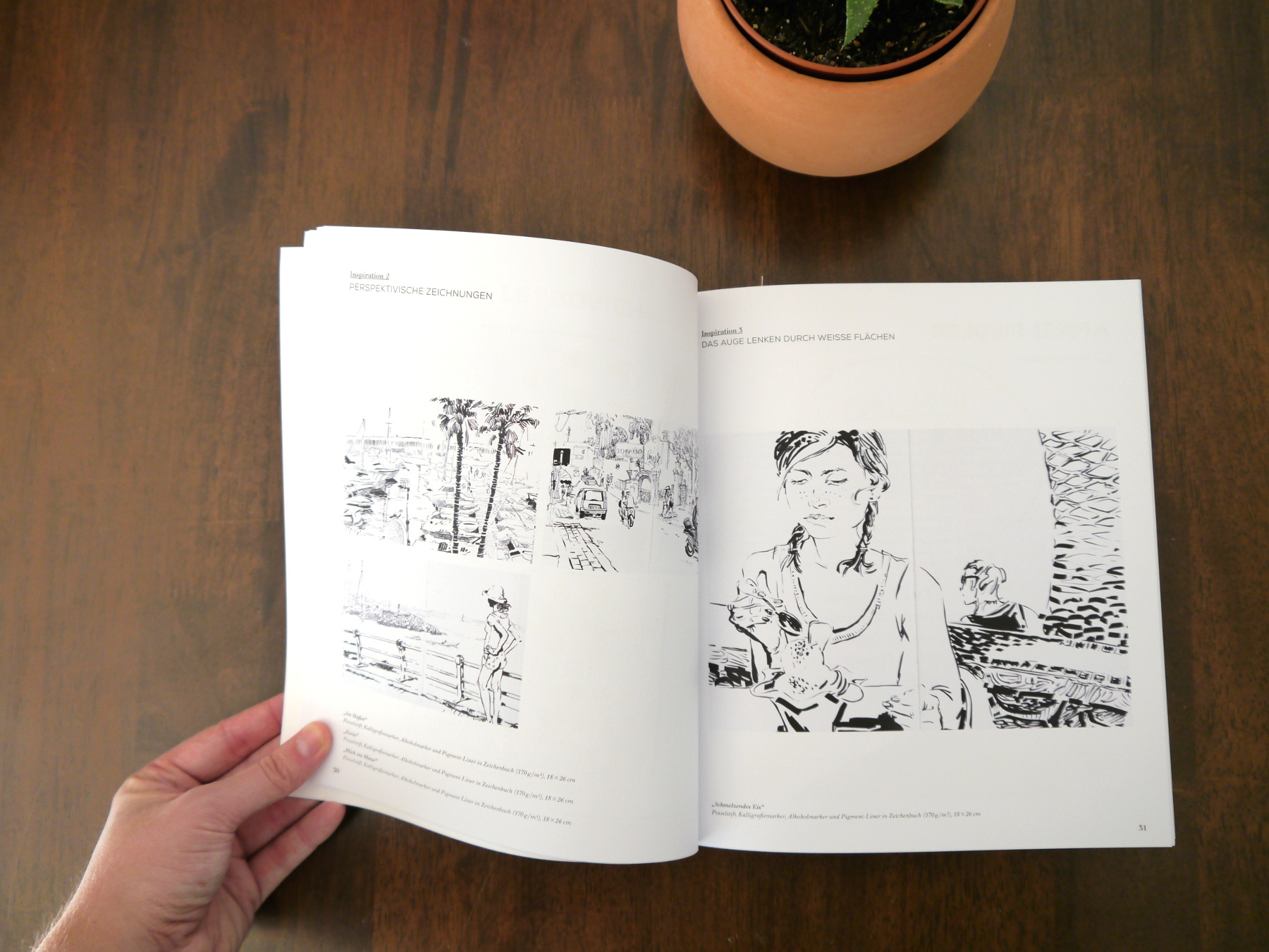 Persönlich besonders gefallen haben mir Johanna Zebojnik-Ihlas (S. 76) und Kim Hus (S. 92) Skizzen. Ein weiterer Pluspunkt ist, dass grundsätzlich die Webseiten der Künstler angegeben sind. So kann man noch ganz viele weitere Arbeiten von ihnen online betrachten.