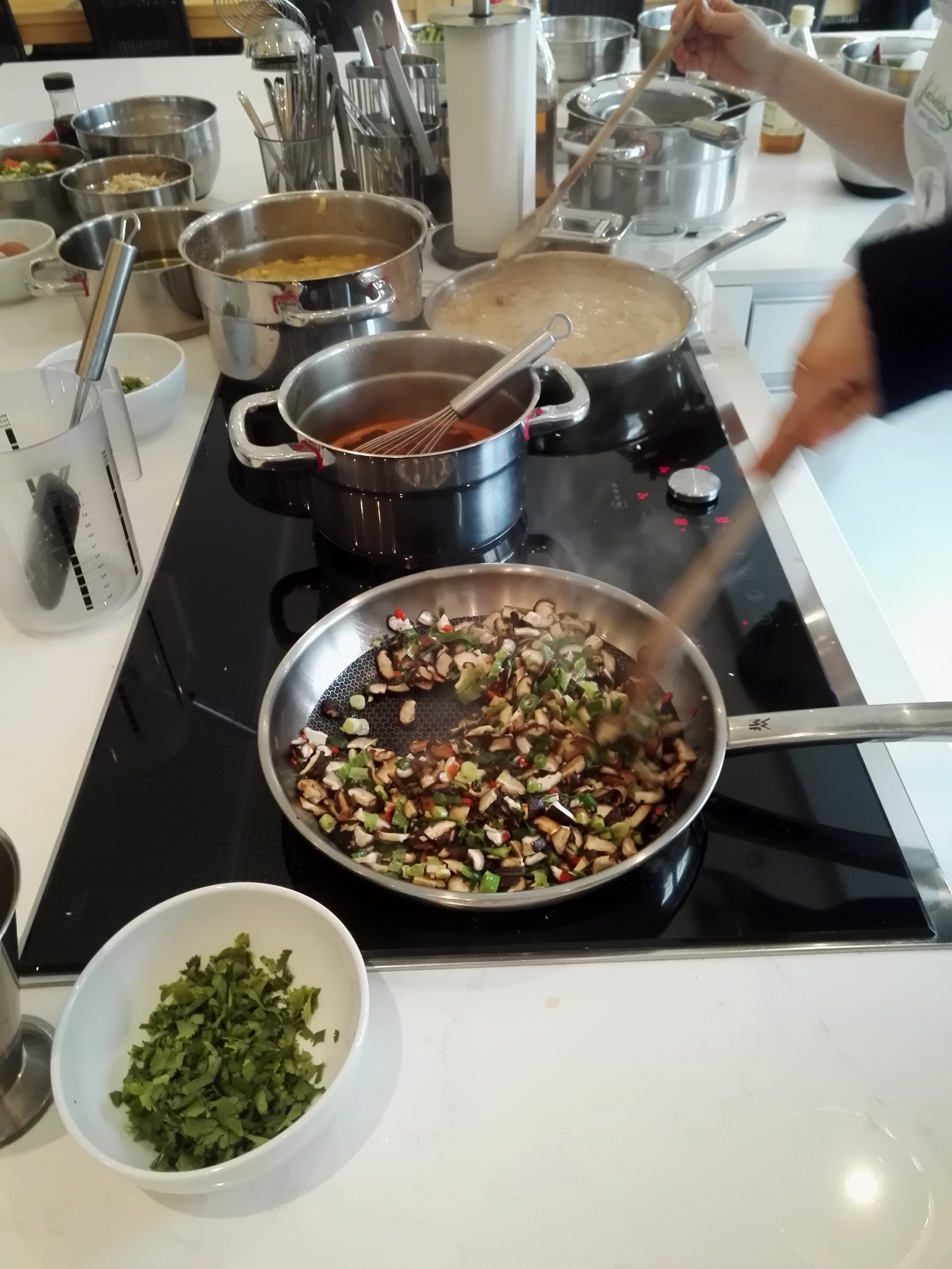 Ich war bei einem Kochkurs. Erstaunlicherweise. Denn normalerweise lasse ich mich ja lieber bekochen. Aber diesmal war ich bei einem Kochkurs und habe selbst mitgekocht. Und ehrlich gesagt, es war super. Es hat hervorragend geschmeckt.