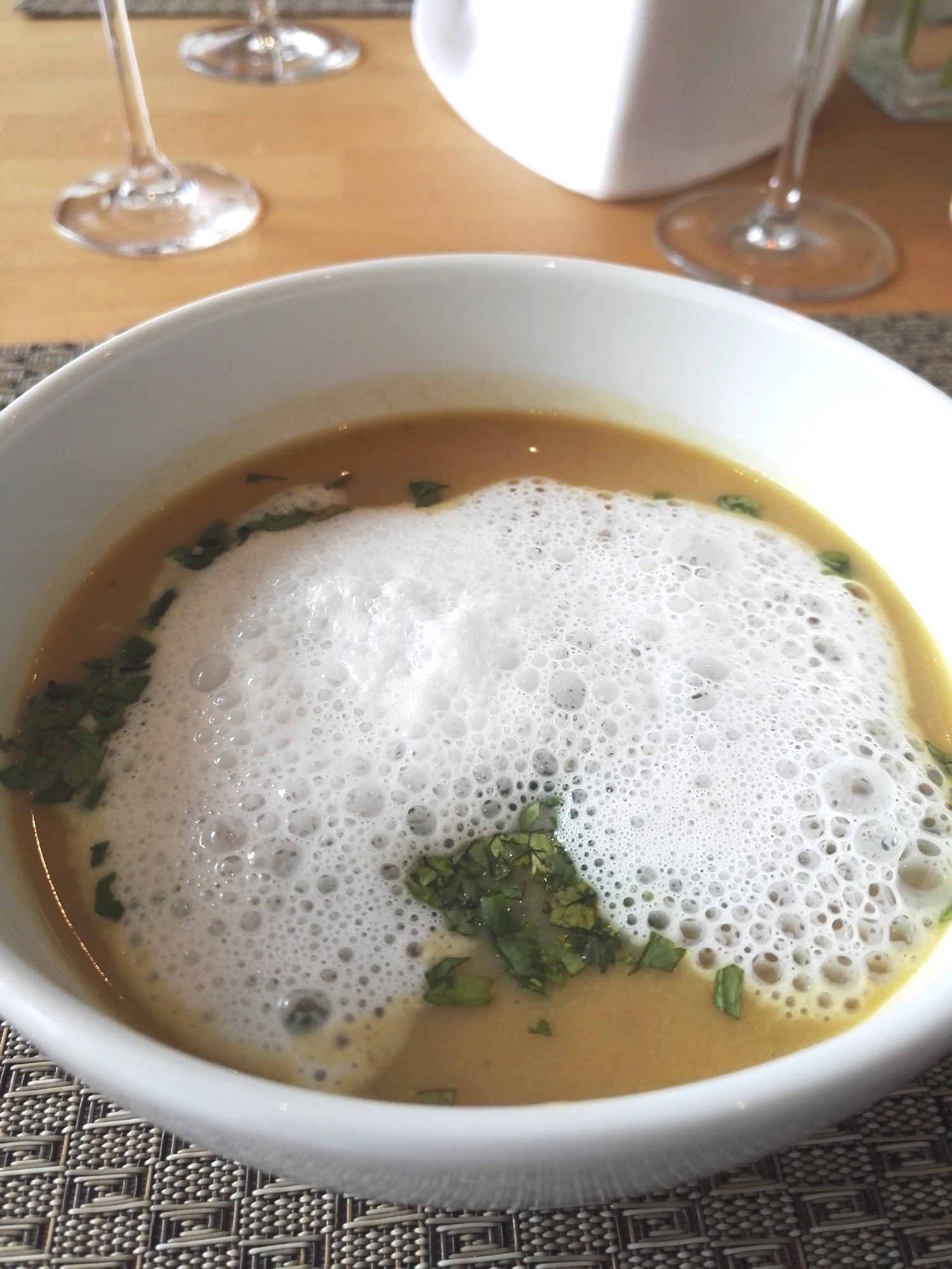 Rahmsuppe von rotem Curry mit Kokosschaum