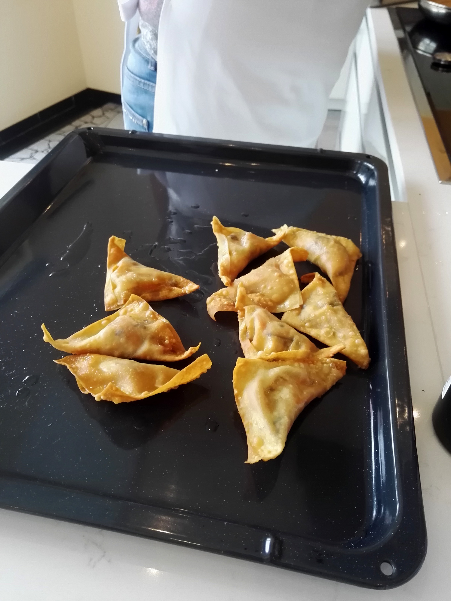 WanTan-Taschen mit zweierlei Saucen und Reis
