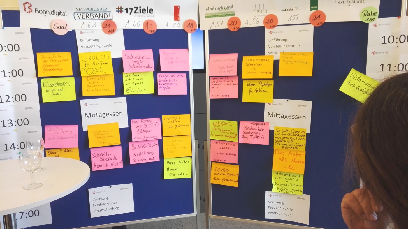 Barcamps sind inzwischen sehr beliebt. Sie werden zu den unterschiedlichsten Themen oder auch Nichtthemen gemacht. BarCamp Bonn, StartCamp, LiteraturCamp, NachhaltigkeitsCamp, FutureCamp… Und das sind nur ein paar, die hier in Bonn stattfanden bzw. noch stattfinden werden. Das LiteraturCamp Bonn ist ein Barcamp rund um das Thema Lesen, Bücher und Schreiben und fand gestern (28.4.2018) im Haus der Bildung in Bonn statt.