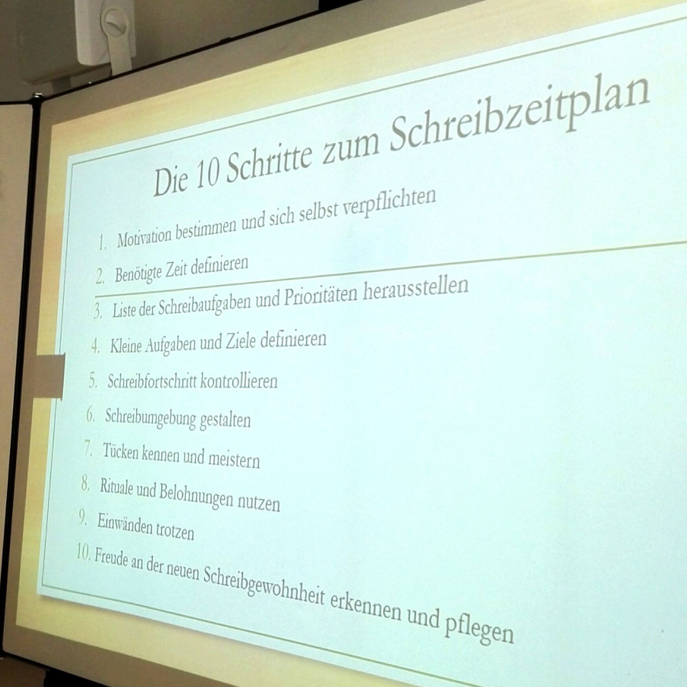 Übrigens gab es zwei Tipps, die sich aber durch den gesamten gestrigen Tag zogen: „Schreiben, schreiben, schreiben!“ und „Üben, üben, üben!“