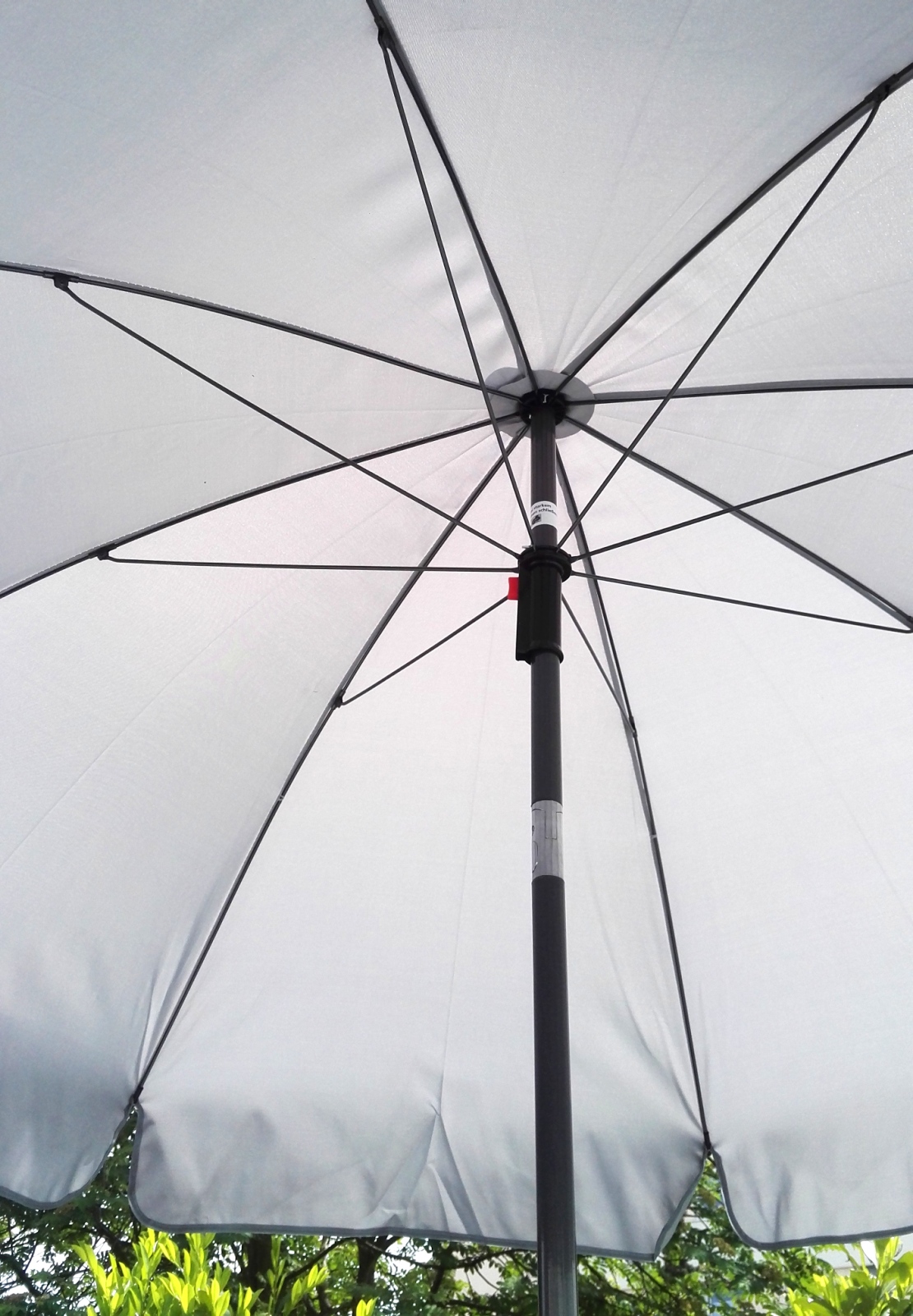 Der Sonnenschirm wird zum ersten Mal ausprobiert.
