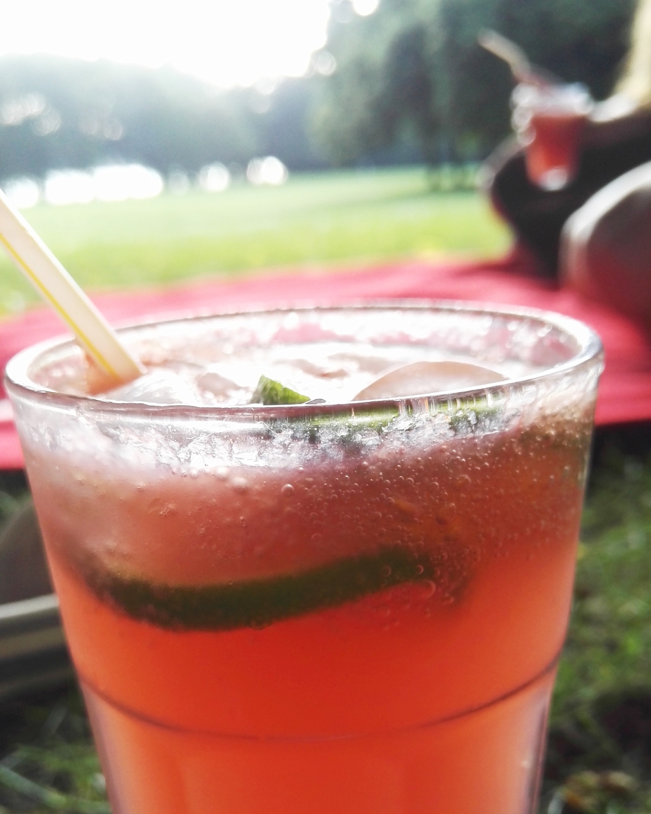 Gegrillt: Veggie-Grillen mit den Mädels am Rhein. Es gab Zucchinipäckchen, leckere Nudelsalate, vegetarische Quesadillas und leckere selbstgemachte Melonenlimonade.
