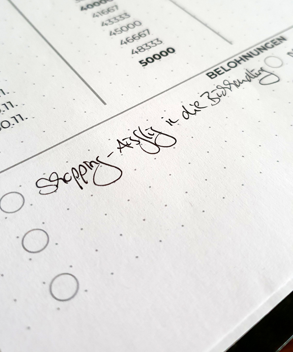 Denn 30 Tage können schnell lang werden, wenn man nur das sieht, was man noch machen muss. Schaut lieber auf das, was ihr schon geleistet habt. Denn das hat die Chance zur Motivation.