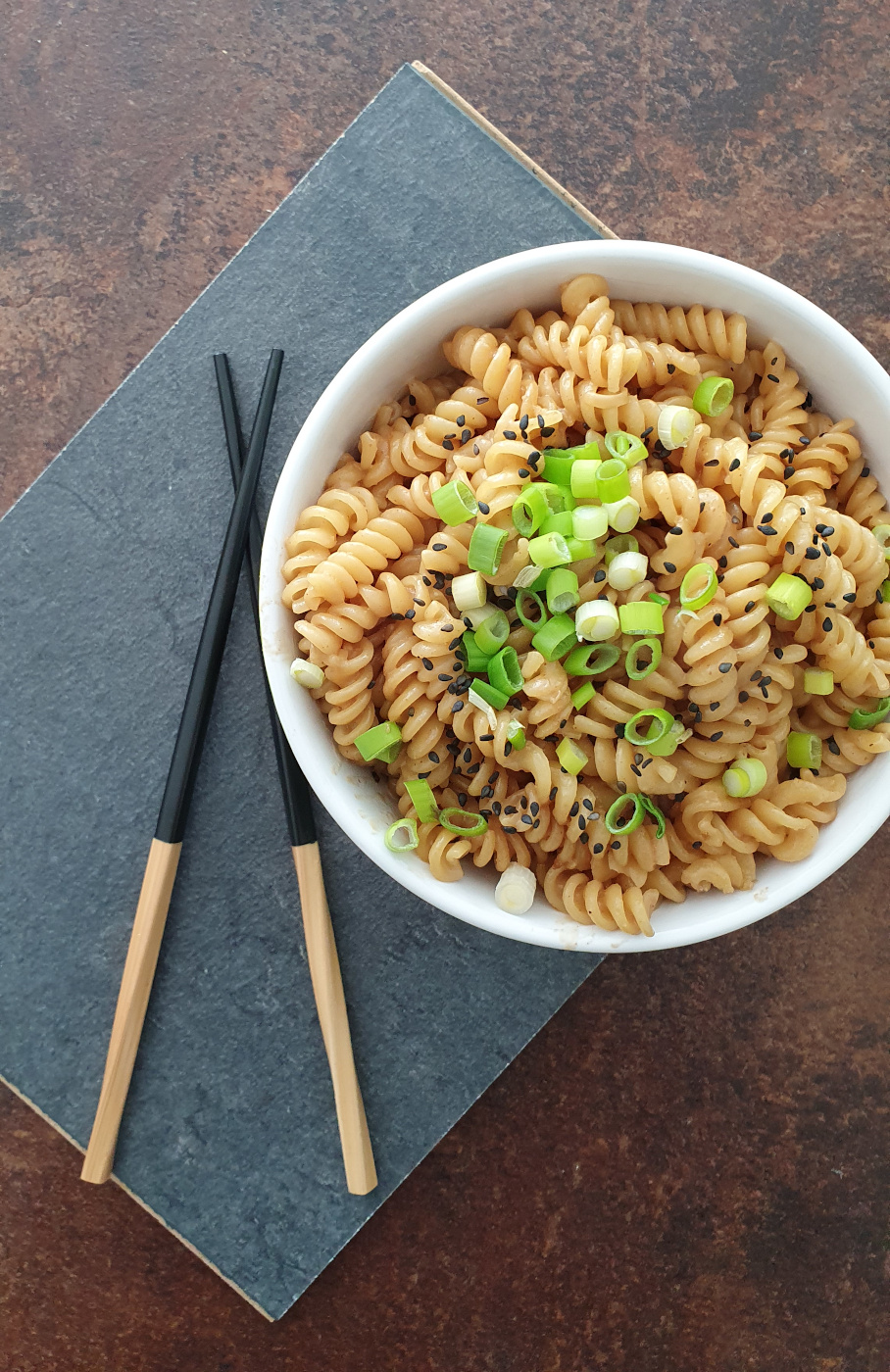 - Nudeln und Erdnusssauce miteinander vermengen und nochmal warm werden lassen.