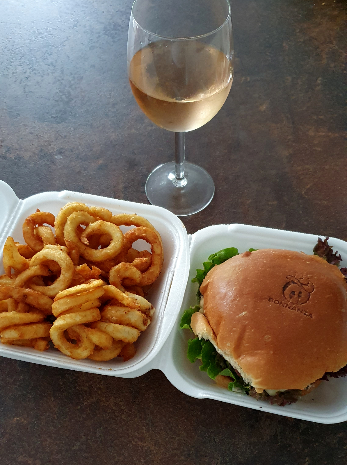 Danach habe ich mir einen Cheeseburger gegönnt mit Curly-Fries. Burger und Fries waren sehr lecker. Jetzt rolle ich von einem Raum in den nächsten, aber das war es wert.
